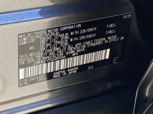 - VIN : JTMFB3FV5SD289266