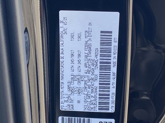 - VIN : 3TMLB5JNXSM126462