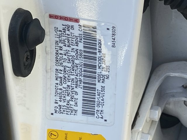 - VIN : JTHBF30G430115869