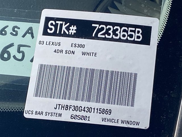 AS IS CAR. Runs great. Good tires and brakes. Engine and transmission run smooth. FREE CARFAX! Crystal White 2003 Lexus ES 300 FWD 5-Speed Automatic Electronic with Overdrive 3.0L V6 SMPI DOHCRecent Arrival! 21/29 City/Highway MPGWHY BUY at the BEACH? Our customers are our most valuable asset. If you are already a customer, welcome back. If you are new to Toyota of Huntington Beach, we would like to convince you to join the ranks of satisfied Toyota of Huntington Beach customers. Financing for all situations. Great rates available. GREAT rates for good credit. Financing for ALL credit situations. BK ok. Low score OK. (See dealer for details.) Se Hablamos Espanol. Marticular OK.