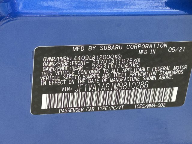 - VIN : JF1VA1A61M9810286