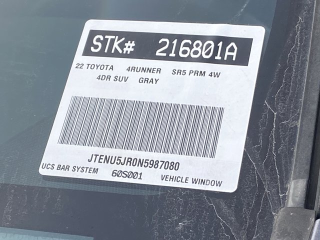THIRD ROW SEAT. Looks and runs great. Good tires and brakes. Engine and transmission run smooth. Damage free. Immaculate inside and out. FREE CARFAX! We have great interest rate and financing for ALL credit situations.. Magnetic Gray Metallic 2022 Toyota 4Runner SR5 Premium 4WD 5-Speed with ECT 4.0L V6 DOHC 24V 4WD.Recent Arrival!Toyota Gold Certified Details:* Transferable Warranty* Roadside Assistance for 7 Year / 100,000 Mile. Standard New-Car Financing Rates Available. Warranty honored at over 1,400 Toyota dealers in the continental U.S. & Canada. Trade-ins accepted. Trouble-free handling of your transaction, including DMV paperwork* Roadside Assistance* 160 Point Inspection* Vehicle History* Limited Warranty: 12 Month/12,000 Mile Limited Comprehensive Warranty: 12 Month/12,000 Mile (whichever comes first) from certified purchase date* Warranty Deductible: $0* Powertrain Limited Warranty: 84 Month/100,000 Mile (whichever comes first) from TCUV purchase dateWHY BUY at the BEACH? Our customers are our most valuable asset. If you are already a customer, welcome back. If you are new to Toyota of Huntington Beach, we would like to convince you to join the ranks of satisfied Toyota of Huntington Beach customers. Financing for all situations. Great rates available. GREAT rates for good credit. Financing for ALL credit situations. BK ok. Low score OK. (See dealer for details.) Se Hablamos Espanol. Marticular OK.