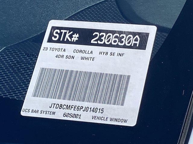 INFRARED PACKAGE, Premium Package: Blind Spot Monitor on Color-Keyed Heated Power Outside Mirrors w/ Turn Signal Indicators w/ Rear Cross-Traffic Alert, Power Tilt/Slide Moonroof w/ Sliding Sunshade. Looks and runs great. Good tires and brakes. Engine and transmission run smooth. Damage free. Immaculate inside and out. FREE CARFAX! We have great interest rate and financing for ALL credit situations.. Ice Cap 2023 Toyota Corolla Hybrid SE FWD CVT 1.8L DOHC 16V VVT 1.8L DOHC 16V VVT.Recent Arrival! 50/43 City/Highway MPGToyota Gold Certified Details:* Roadside Assistance* Warranty Deductible: $0* Transferable Warranty* Roadside Assistance for 7 Year / 100,000 Mile. Standard New-Car Financing Rates Available. Warranty honored at over 1,400 Toyota dealers in the continental U.S. & Canada. Trade-ins accepted. Trouble-free handling of your transaction, including DMV paperwork* Limited Warranty: 12 Month/12,000 Mile Limited Comprehensive Warranty: 12 Month/12,000 Mile (whichever comes first) from certified purchase date* 160 Point Inspection* Powertrain Limited Warranty: 84 Month/100,000 Mile (whichever comes first) from TCUV purchase date* Vehicle HistoryWHY BUY at the BEACH? Our customers are our most valuable asset. If you are already a customer, welcome back. If you are new to Toyota of Huntington Beach, we would like to convince you to join the ranks of satisfied Toyota of Huntington Beach customers. Financing for all situations. Great rates available. GREAT rates for good credit. Financing for ALL credit situations. BK ok. Low score OK. (See dealer for details.) Se Hablamos Espanol. Marticular OK.