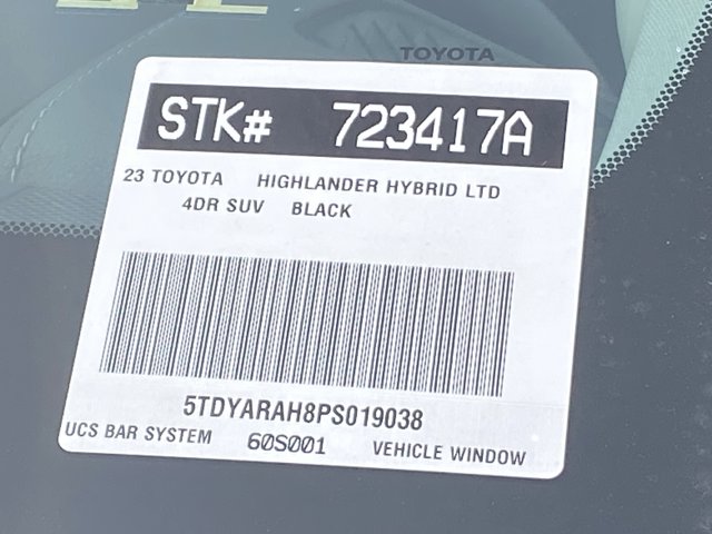 Looks and runs great. Good tires and brakes. Engine and transmission run smooth. Damage free. Immaculate inside and out. FREE CARFAX! We have great interest rate and financing for ALL credit situations.. Midnight Black Metallic 2023 Toyota Highlander Hybrid Limited FWD eCVT 2.5L I4 PDI Hybrid DOHC 16V LEV3-SULEV30 2.5L I4 PDI Hybrid DOHC 16V LEV3-SULEV30.Recent Arrival! 36/35 City/Highway MPGWHY BUY at the BEACH? Our customers are our most valuable asset. If you are already a customer, welcome back. If you are new to Toyota of Huntington Beach, we would like to convince you to join the ranks of satisfied Toyota of Huntington Beach customers. Financing for all situations. Great rates available. GREAT rates for good credit. Financing for ALL credit situations. BK ok. Low score OK. (See dealer for details.) Se Hablamos Espanol. Marticular OK.