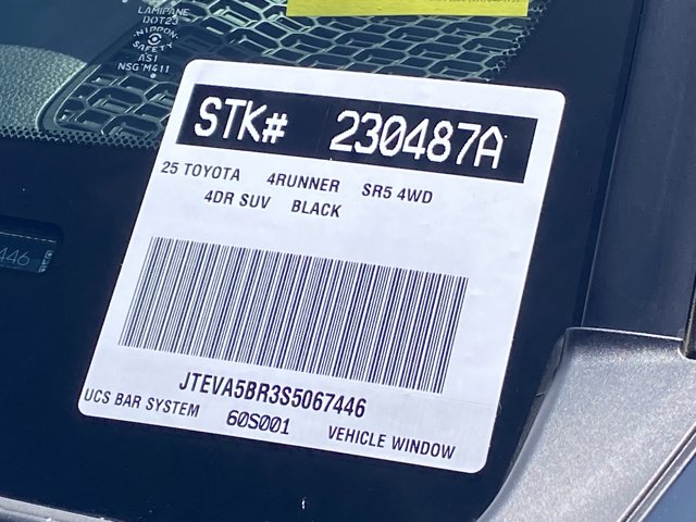 THIRD ROW SEAT. Looks and runs great. Good tires and brakes. Engine and transmission run smooth. Damage free. Immaculate inside and out. FREE CARFAX! We have great interest rate and financing for ALL credit situations.. Black 2025 Toyota 4Runner SR5 4WD 8-Speed Automatic 2.4L 4-Cylinder 4WD, ABS brakes, Active Cruise Control, Alloy wheels, Electronic Stability Control, Front dual zone A/C, Heated door mirrors, Illuminated entry, Low tire pressure warning, Remote keyless entry, Traction control.Recent Arrival!Toyota Gold Certified Details:* Powertrain Limited Warranty: 84 Month/100,000 Mile (whichever comes first) from TCUV purchase date* Warranty Deductible: $0* Roadside Assistance* Limited Warranty: 12 Month/12,000 Mile Limited Comprehensive Warranty: 12 Month/12,000 Mile (whichever comes first) from certified purchase date* 160 Point Inspection* Transferable Warranty* Vehicle History* Roadside Assistance for 7 Year / 100,000 Mile. Standard New-Car Financing Rates Available. Warranty honored at over 1,400 Toyota dealers in the continental U.S. & Canada. Trade-ins accepted. Trouble-free handling of your transaction, including DMV paperworkWHY BUY at the BEACH? Our customers are our most valuable asset. If you are already a customer, welcome back. If you are new to Toyota of Huntington Beach, we would like to convince you to join the ranks of satisfied Toyota of Huntington Beach customers. Financing for all situations. Great rates available. GREAT rates for good credit. Financing for ALL credit situations. BK ok. Low score OK. (See dealer for details.) Se Hablamos Espanol. Marticular OK.