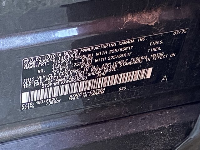 - VIN : 2T3F1RFVXSW525550